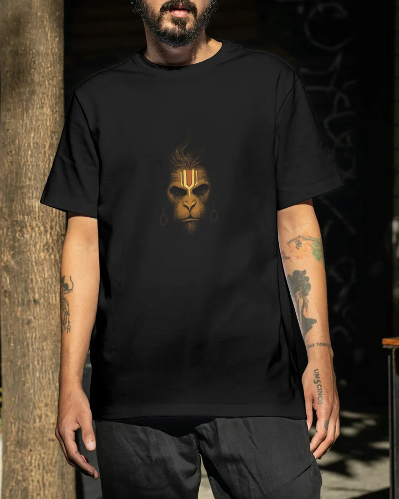 Print: Minimal yet powerful, this artwork of Hanuman’s face with sacred tilak emphasizes purity and devotion. A bold design for believers who carry faith close to their hearts.