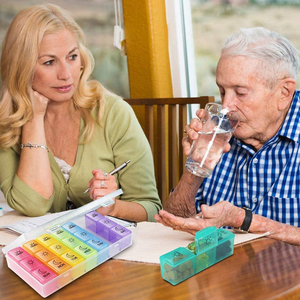 Pill Box 7 Day Weekly Medicine Organizer Daily Planner Portable Travel Container Holder for Vitamin and Supplement Moisture-Proof Compartments Case for Pocket Purse Easy to Use BPA Free (21 Grid)