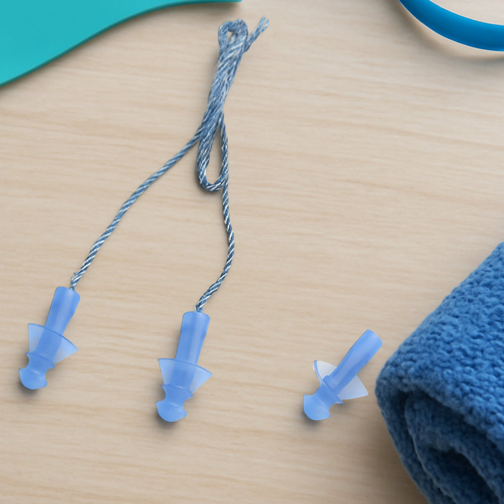 Soft Silicone Ear Plugs Hearing Protection Christmas Tree Shape Reusable Earplug with Cord Noise Cancelling for Sleeping, Shooting, Stretchy String Swim Swimming Earplugs (2 Pc Set / With 1 Extra Ear Plugs)