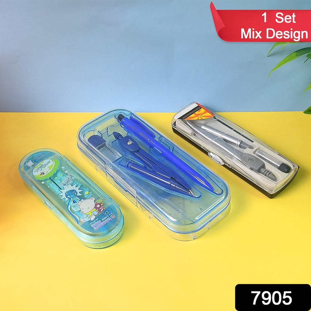 Geometry Compass Box Set for Students – Assorted Styles with Complete Drawing Instruments in Compact Plastic Case(1 Set Mix Design )