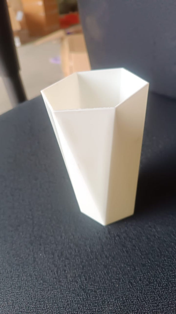 Add a touch of minimalistic elegance to your space with this modern geometric hexagon flower vase. Crafted from high-quality plastic with a matte white finish, this vase features a unique faceted design that blends seamlessly into contemporary, modern, or Scandinavian interiors. Whether used as a stand-alone decorative piece or to hold artificial or fresh flowers, this vase offers a chic and space-efficient way to elevate the aesthetic of your room. Lightweight and durable, it is ideal for desks, shelves, dining tables, or entryways.