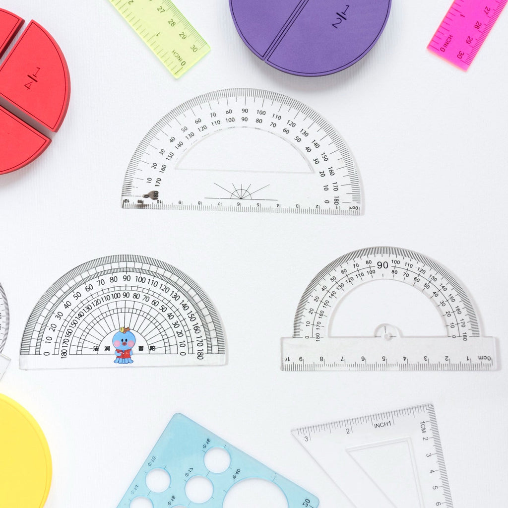 Multipurpose Transparent Plastic Protractor Set – 180-Degree Geometry Measurement Tool for School, Office & Drawing Use – Assorted Designs with Scale Markings (3 Pcs Set)