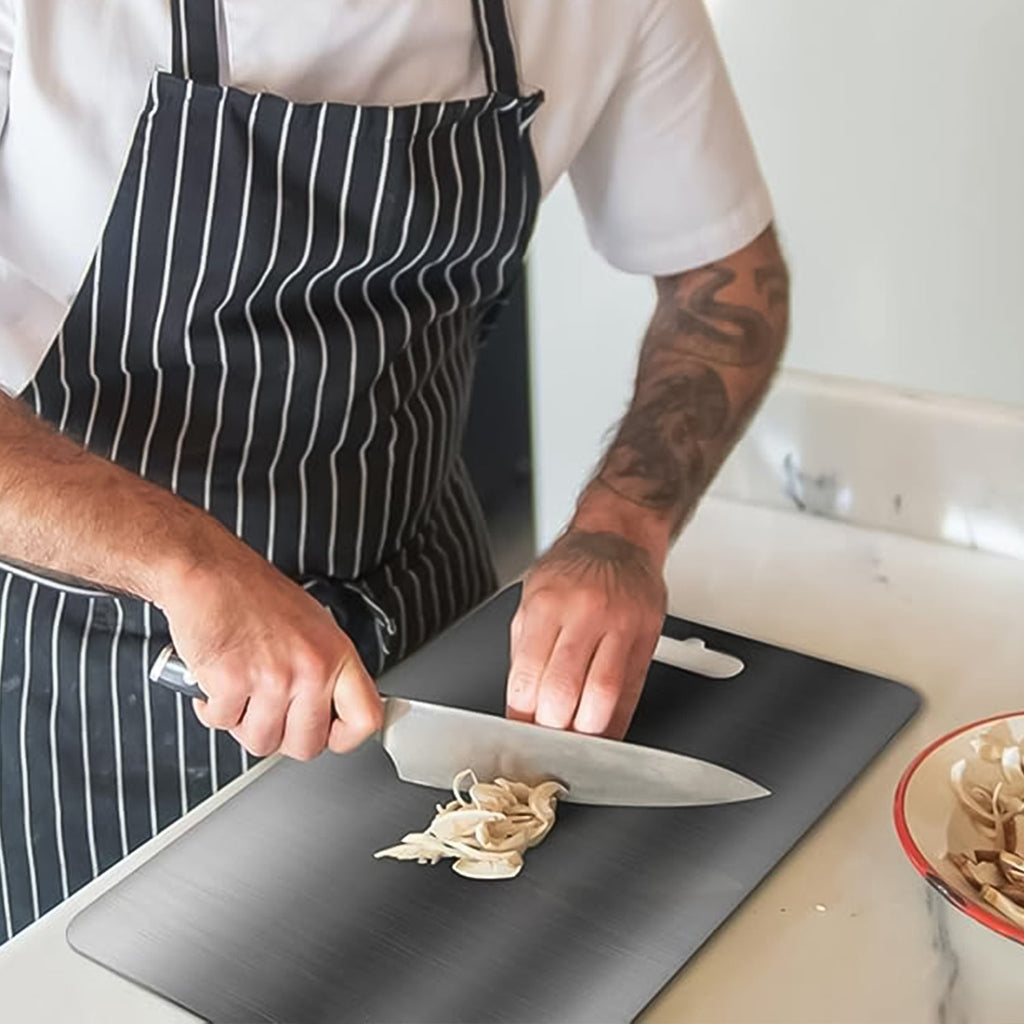 • 【 Material 】:The cutting board is made of food grade stainless steel